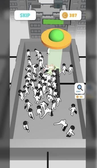 2.这一关的重点就是让我们去吸取奶牛,操作还是比较简单的,需要注意的是一定要在奶牛变成绿色的时候才能长按点击让我们的飞船去收掉他们,操作还是比较简单的,主要注意时间。