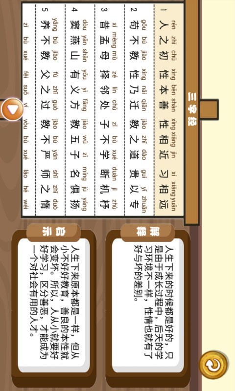 3.通过听软件里的有声朗读,去了解三字经的一些完美的韵律和节奏变化。