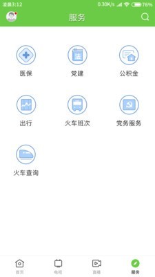 3、服务项目多,如出行、公积金、医疗、党建、火车查询等。