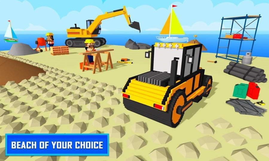1、玩家能在其中体验驾驶压路机和货物起重机等大型机器,并且在作品中体验有趣的驾驶车辆,游戏中拥有高度模拟了海滩建设的内容。