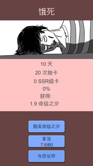 1、因为你的食物,水,可都是抽卡得来的。你还会生病,记得及时治疗。