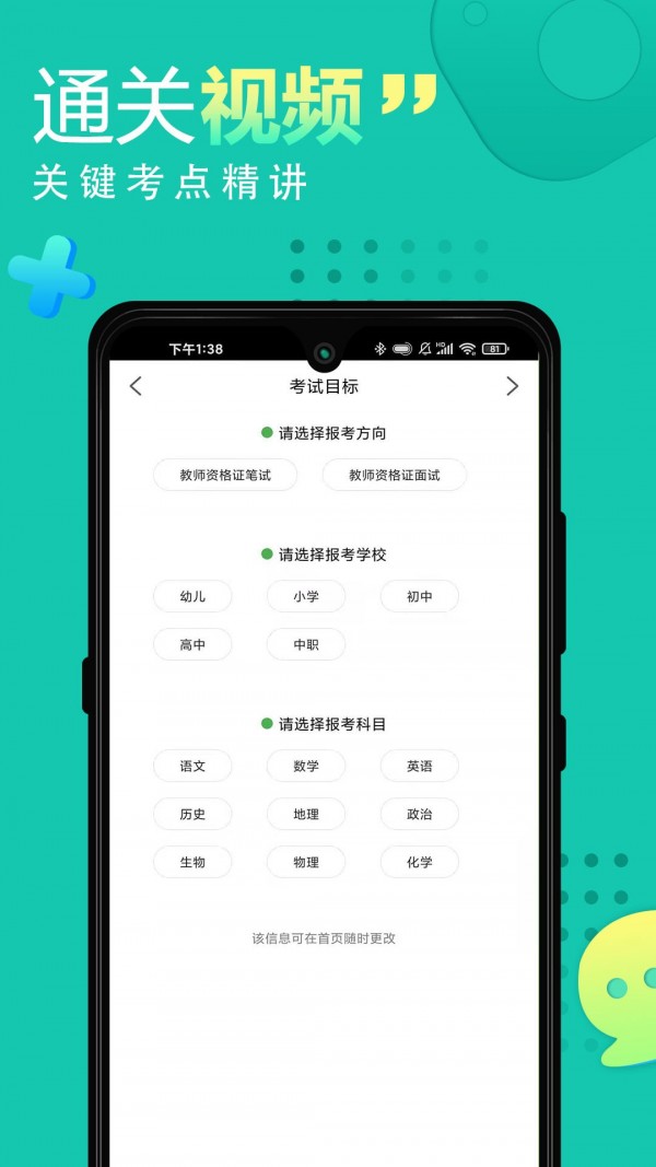 教师资格证网课app是一款精心打造的教师资格证备考软件,为考生提供教师资格考试信息、备考干活、历年考题、笔试面试技巧等服务,包含了历年的真题,在线刷题,一步步查漏补缺,有详细的答案解析,课程丰富,可以根据自己的实际情况来选择性的进行学习,喜爱的朋友赶快下载体验吧!