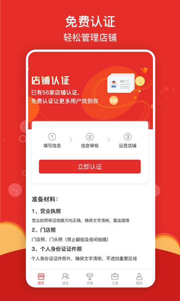 1.店铺免费认证,认证成功即可轻松管理店铺