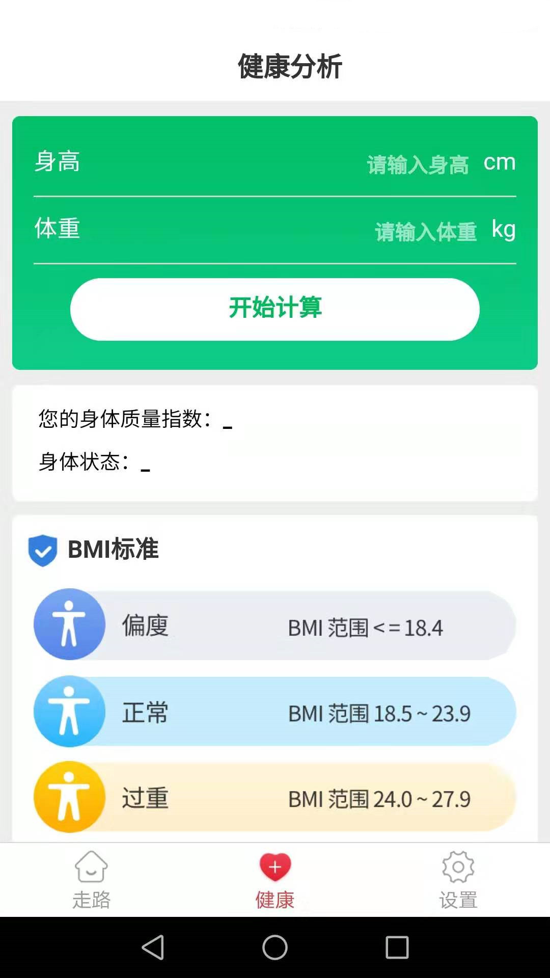 2、输入好自己的身高和体重会应用会给出科学合理的健康指数出来。