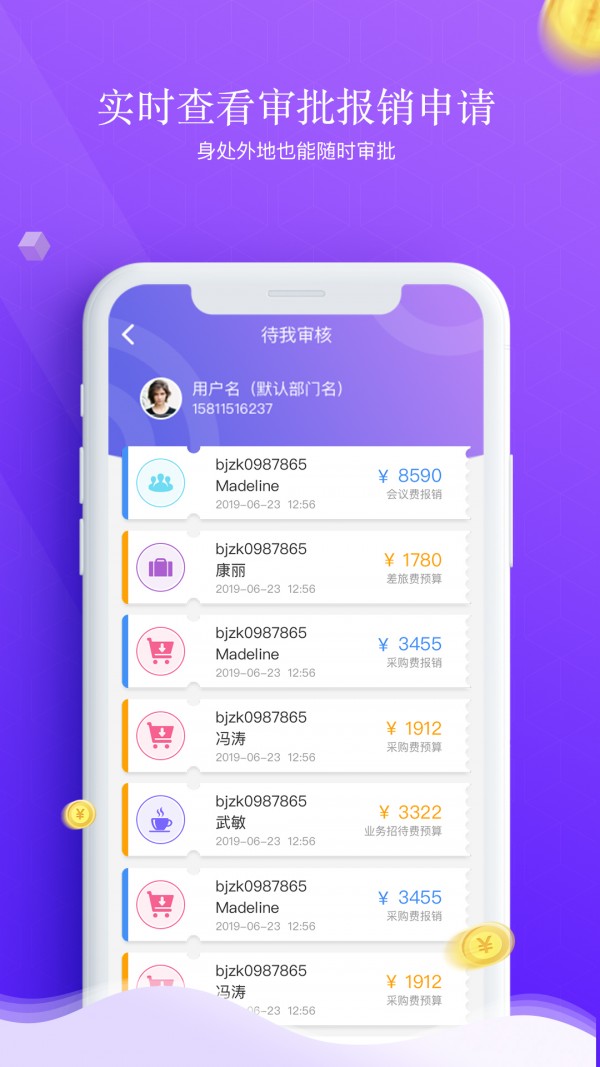 对于企业管理层,实时获得资金支出的申请单据,把控资金流向,随时随地查看、审批报销单。
