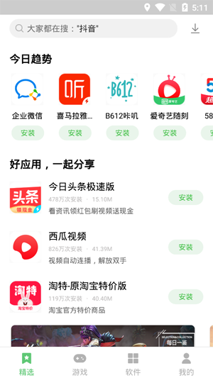 新品速递,流行指数,多种有时效性的深度的专业的推荐,可在编辑推荐板块直接下载。有最具争议的应用PK,最具噱头的应用故事,最深入的应用剖析,最应景的应用推荐,还可以进行用户评价的反馈互动,让用户真正地畅享娱乐生活。