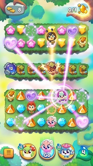 2、一路上,你将收集可爱宠物芽芽、与精灵游玩、对抗闇黑小队,当然也会配对甜蜜珠宝;