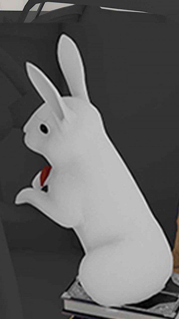 1、我们下来到有着兔子拿着热狗的柜台,上面的筷子盒里面筷子的摆放方位是,来打欧有两个兔子当晚餐的地方,我们点击柜子,使用筷子的提示打开柜子得到面包。