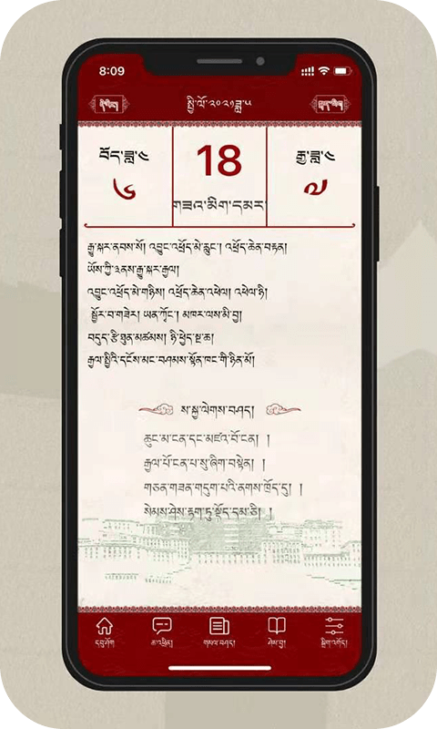 “银巴万年历”APP中包含公元1年至2100年间的浦尔、楚尔、甘丹、极孜四种影响较大的藏历和农历以及公历,