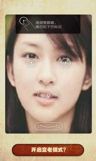 调整眼睛、嘴巴和下巴标记,点击开启变老