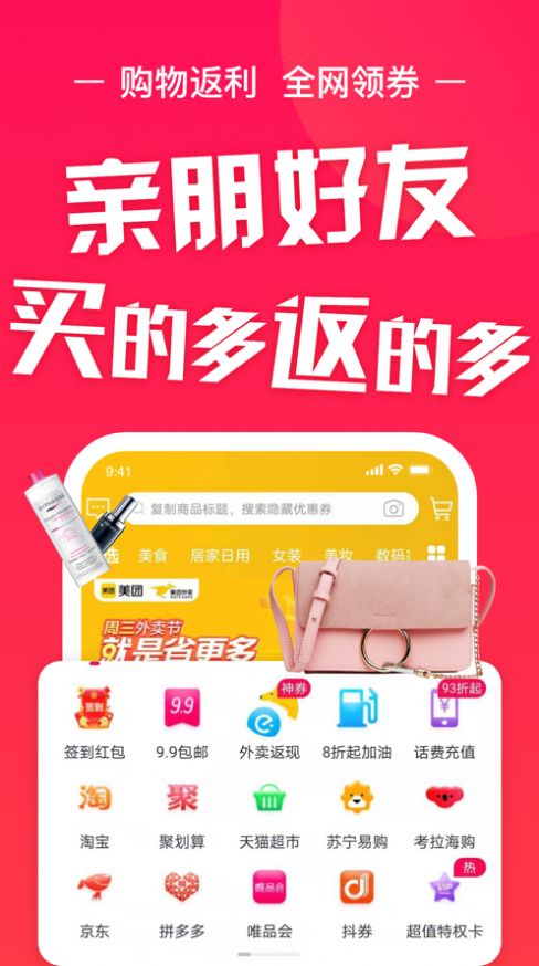 淘特返拥有全国各地的海量爆款商品,你可以在app里面买到很多低价的商品,直接选购商品即可,全网有折扣的商品任你挑选,可享受到各种折扣活动,很多限时抢购的商品都提供在这,能帮你买到许多物美价廉的商品,不用再剁手啦,用户们除了可以在网上买东西之外,还能利用超多大额返利,同时每天还会发放折扣券,帮助你省下一大笔钱,快来下载使用吧。