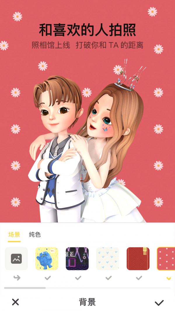 •照相馆:多种动画拍照效果,尬舞、明星同款等。可以自拍也可以跟好友一起合拍,同时提供各种贴纸、音乐效果。动画效果持续更新中。