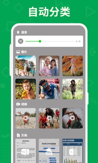 一款高效管理聊天记录的APP,支持对微信、QQ聊天的照片、视频、语音、及各类文档进行扫描查找;