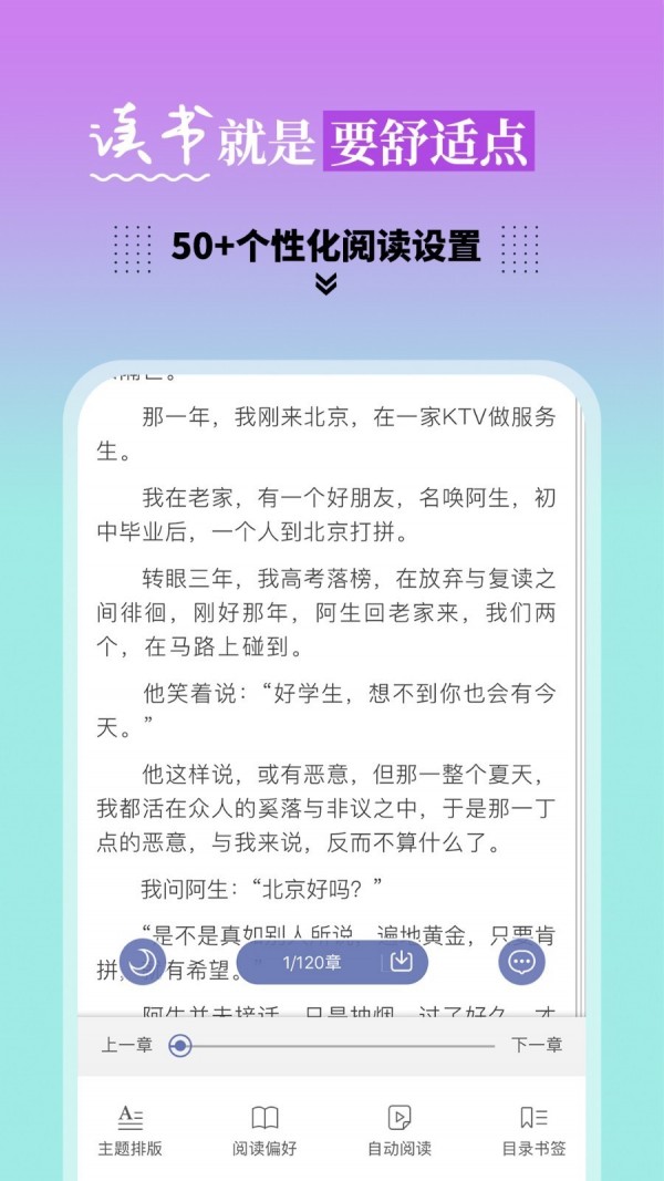 【丰富设置】自定义阅读排版、仿真翻页模式,还有页自动翻阅读懒人专享。