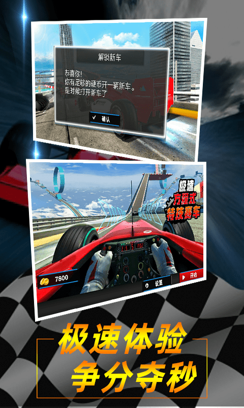 3、极速方程式特技赛车为您带来激动人心的赛车乐趣,精美的游戏图片和真实的赛车场景。