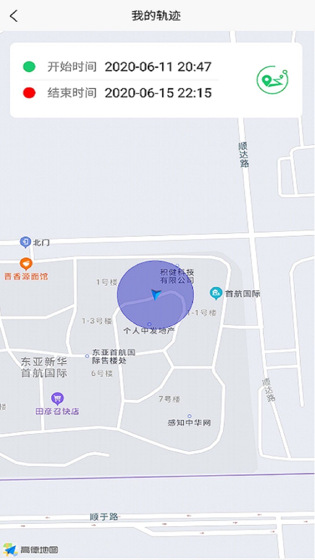 5、历史轨迹记录:在线上用户可以随时查近期的活动轨迹记录,便捷;