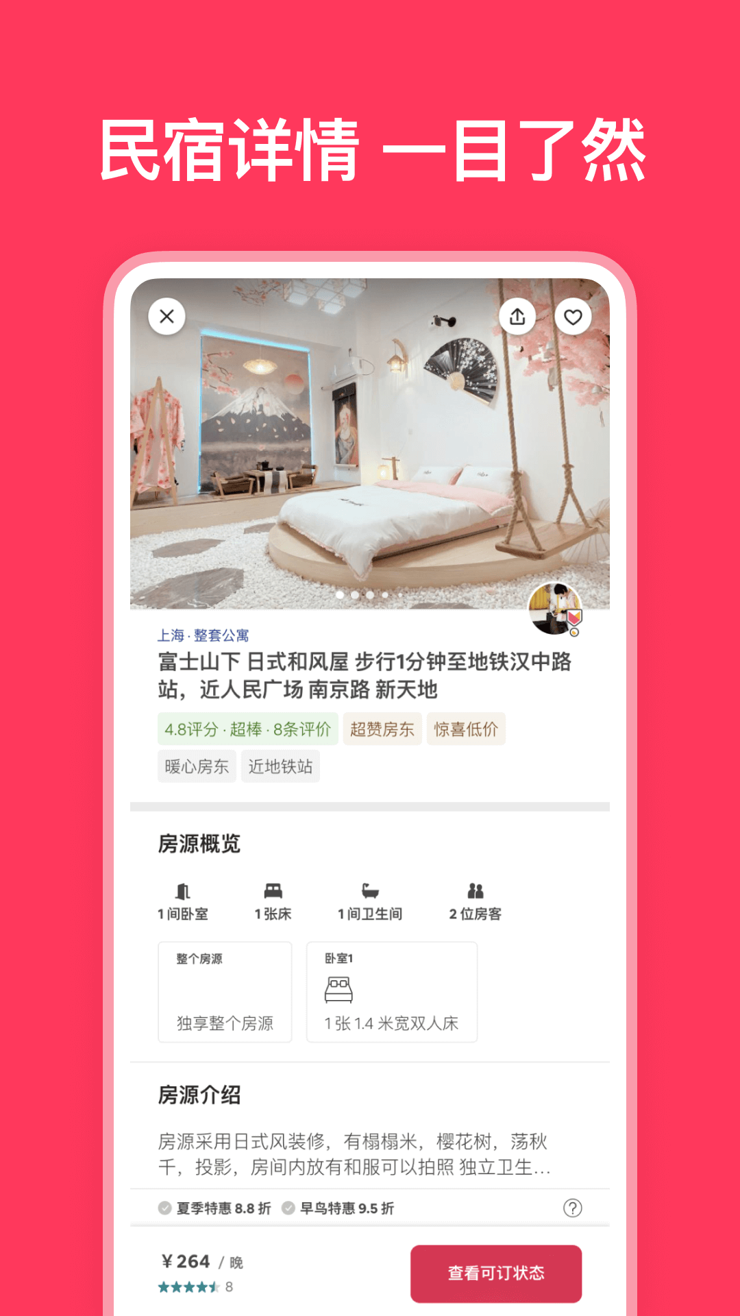 成为爱彼迎房东,无需注册费用即可上架你的房源、客栈、民宿公寓,赚取丰厚的出租收入!随时随地在应用里更新你的民宿房源和可订日历,通过「房东指