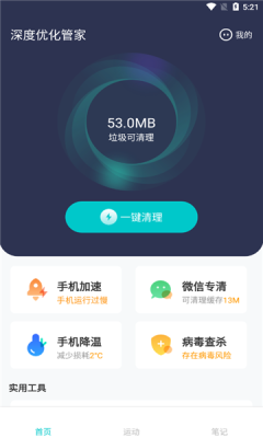 深度优化管家是一款很多人在用的软件,这款软件可以轻松清除手机中的深度垃圾,而且还有省电功能,能够更大程度上节省电量。有时候我们发现玩着玩着手机会变卡,其实就是隐藏的运行内存比较多,就可以使用深度优化管家去进行优化内存了。