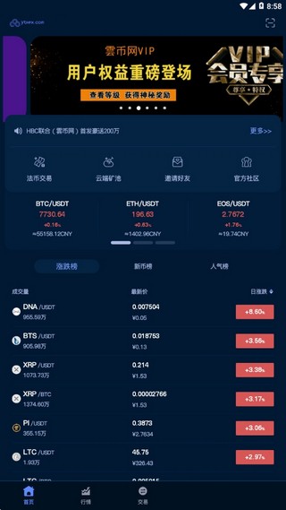 3.支持主流的币种线上交易,还能进行矿机的购买或者置换。