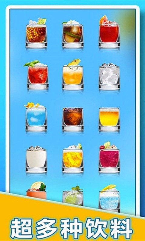 1、非常有趣的模拟休闲游戏,画风简约,玩法上手非常轻松,超多种口味饮料,还有冰块和水果。