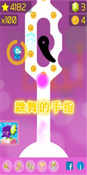 跳舞的手指是一种音乐节奏类游戏,与传统的电子游戏的最大差别,在于传统的电玩使用遥控杆加按键或四键手柄,而跳舞机是用玩家的双脚来完成游戏,你将跟随着音乐进行闯关,游戏中会出现许多障碍,你需要根据音乐的节奏来躲避这些障碍物,非常有趣。游戏玩法轻松,各种小道具帮助你起飞,感兴趣的小伙伴一定不能错过这款游戏,快来下载吧。