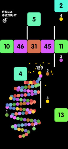 2、注意不要撞块或掉落边缘,点击屏幕以躲避四核