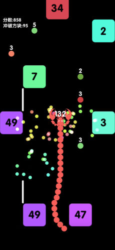 1、只需点按屏幕上的任意位置即可移动球并避开积木