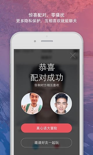 翻牌子基于地理位置,每天为你“推荐”同城合适的对象,你可以选择“喜欢”或者“跳过”该名推荐对象,假如你们相互“喜欢”则配对成功,可马上开始“真心话大冒险”,相比传统的同志社交软件,翻牌子更加简单、私密和好玩,界面简洁易用,提供非常详尽的用户资料,并将同志的社交范围延伸更广。