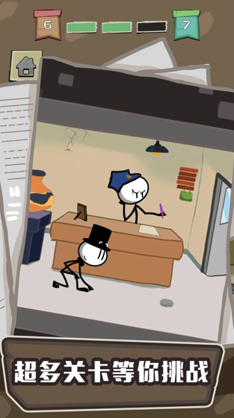 2、发挥你的脑洞更多的关卡挑战,帮助大聪明成功逃离监狱即可闯关成功。