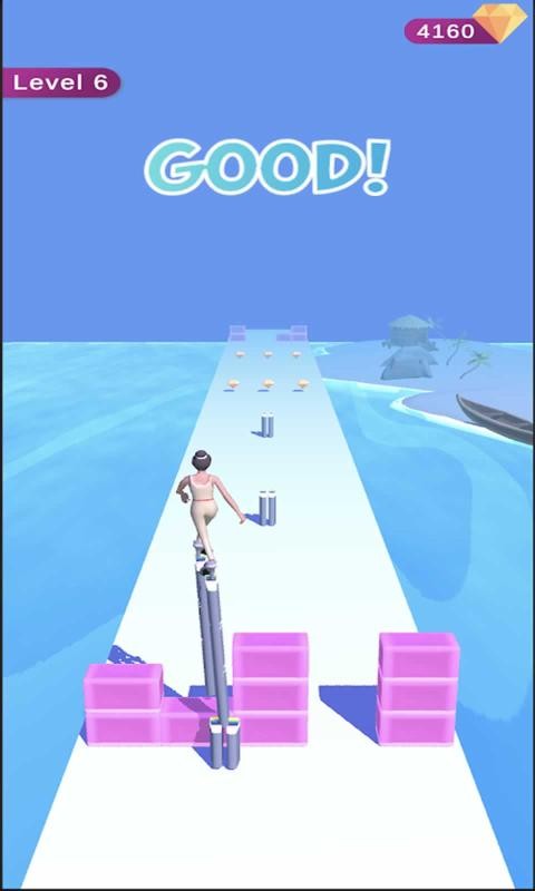 在进行躲避障碍的同时还需要收集到足够多的高跟鞋,让自己能够变轻松越过一些障碍。最终能够顺利的抵达终点,然后你将能够得到所有观众们的掌声,以及更加丰富的奖励,游戏拥有着十分魔性趣味的闯关玩法,玩家需要控制一位美少女进行在竞赛道路之中不断地前进。