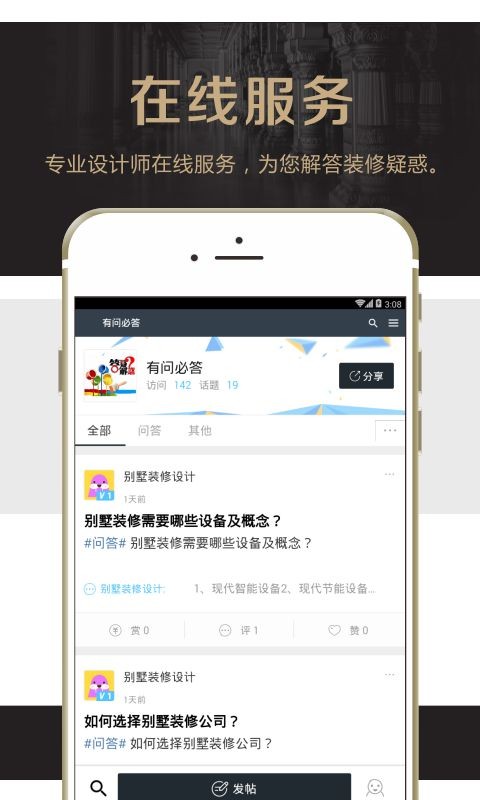 专业设计师在线服务,为你解答装修疑惑,24小时,有问必答。