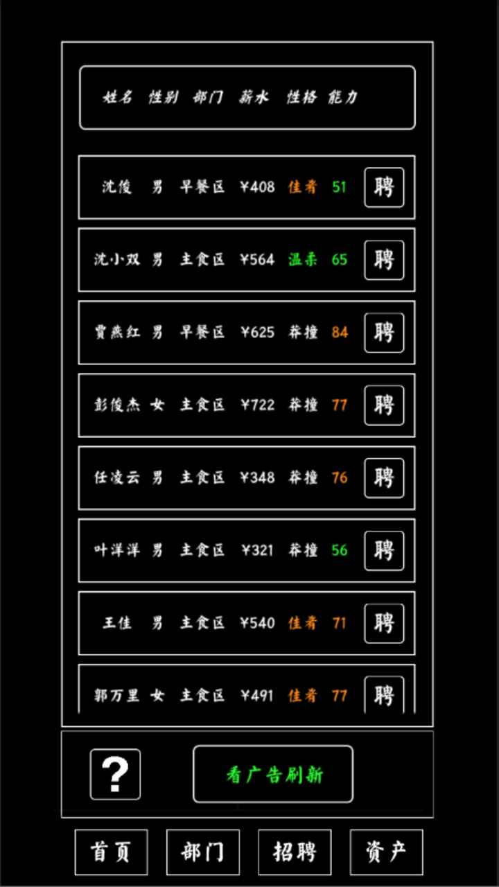 你需要招聘优秀的厨师,发展各个餐饮区域,购买相关的餐饮设备,吸引更多的学生。