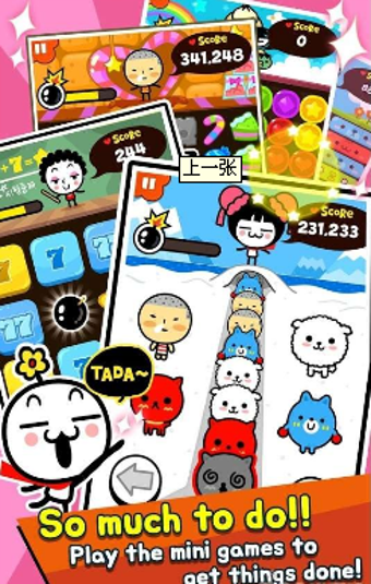 动作益智小镇这款游戏是非常有趣的小游戏,在这里有很多迷你的小游戏玩法,从消除到换装都有,画面也是非常的清新两眼,超多的内容让你能够长时间泡在游戏里享受乐趣!一些益智游戏的集合游戏,加上搞怪的画风看起来也挺不错,就是游戏会在运行时检测,安装了幸运器的话就无法运行游戏,比较坑爹。