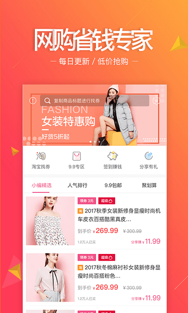 –新增小编精选,人气排行,9块9,聚划算等购物专区