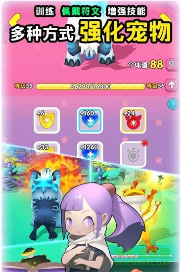 妖怪升级,进阶变身,资质不同,魔法系别相克,合理培养多样的妖怪队伍。