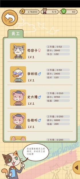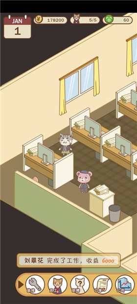 2,游戏风格简单轻松,以办公室职员为代表的可爱小动物,强化了游戏的轻松氛围,在游戏中缓解玩家在生活和工作中的压力。