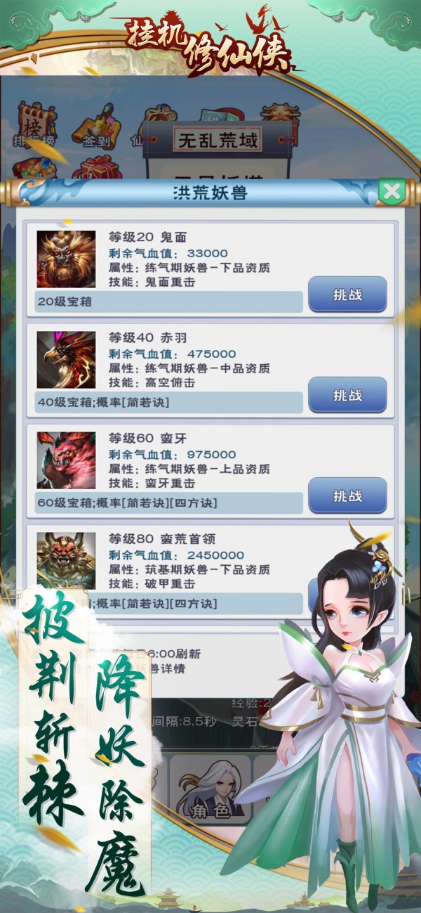 2、轻松休闲的离线挂机系统,开放了许多便捷的双手操作,无限的修炼关卡任务,线下也可以轻松获取高额的经验收益;