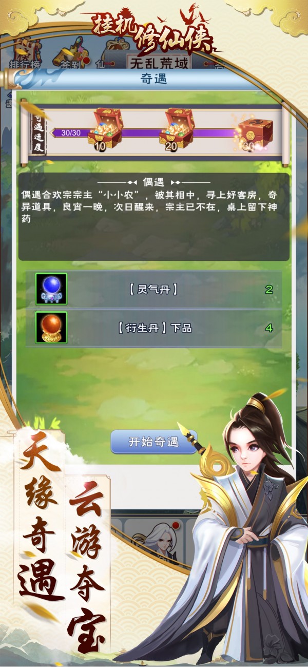 3、轻松的放置玩法,各种武学仙法挂机就能修炼,各种灵丹还可以提高挂机的收益。