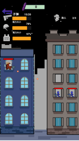 使用有限的子弹将所有的敌人击败,这样你就能够顺利的通关,如果你的子弹用完了还没击杀所有人的话,那么就得重新开始