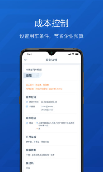 4、规则详情功能,可以设置用车条件,为你进行成本控制,节省企业的预算。