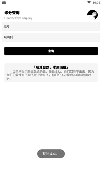 1.方便又快捷的一款缘分测试软件,界面也是十分精简的,打开软件就可以轻松上手,感兴趣的可以来试试;