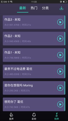 2、界面是没有广告的,除了变声还支持铃声设置;