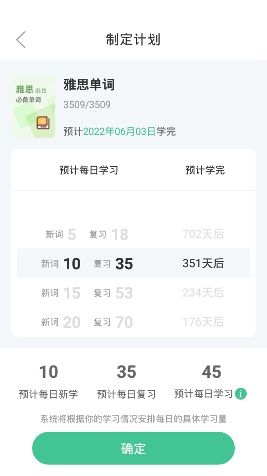 2. 按遗忘曲线智能安排每个单词的复习时间和频度。