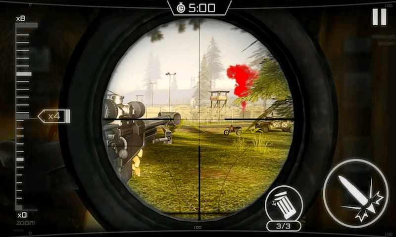 2、玩家扮演一名猎人,要做的就是用狙击枪射击,在丛林中猎杀野兽;