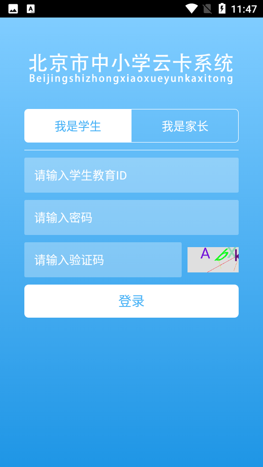 第二步 登录“北京市中小学学生卡卡管系统APP”
