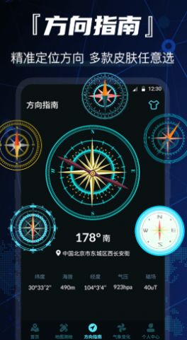 2.在app的方向指南的功能中,有精准的方向定位功能,还有各种丰富的主题皮肤可以让用户进行选择设置,打造个性化的软件主题。