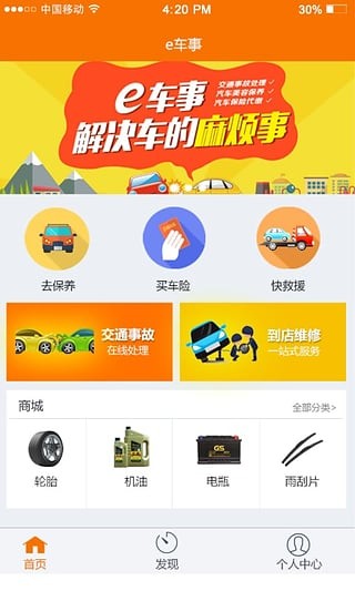 e车事,一站式汽车服务软件,帮助你解决在汽车使用过程中遇到的种种问题,汽车美容,汽车保养,汽车保险,汽车维修等都可以一键轻松实现,汽车有问题就来这里试试吧