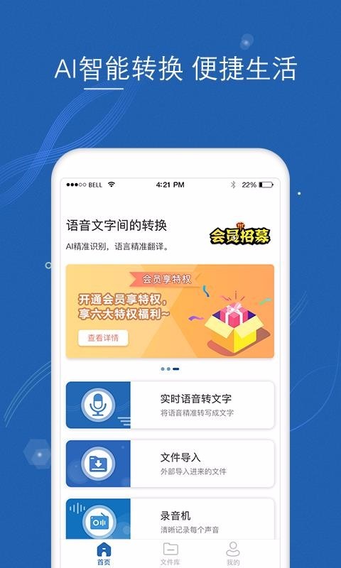 1、简单讲语音以及录音的文件快速转换或者是翻译成文字,操作省心,简单容易完成;