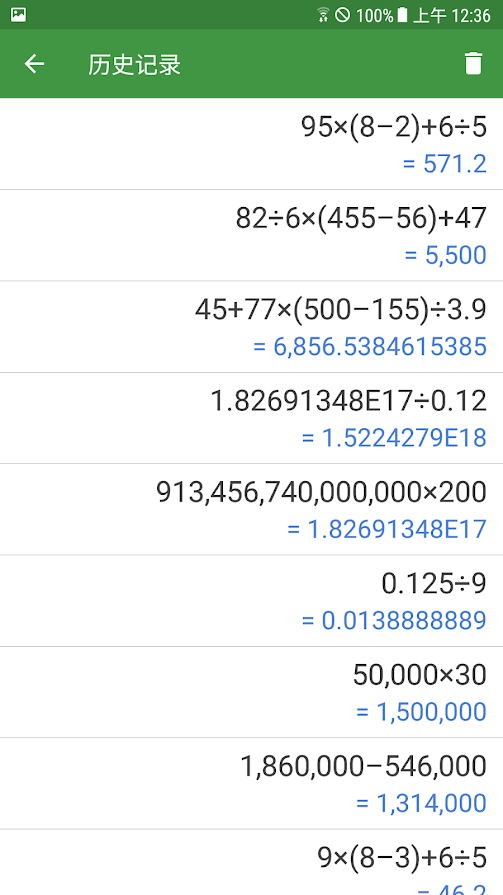 3.点击计算结果进入历史记录界面,点击手机返回键到计算界面;