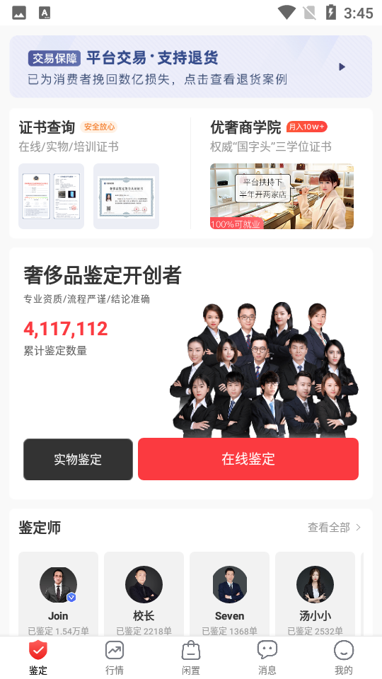 优奢易拍在线鉴定app打造靠谱的买东西平台,保护用户买到正品,告别假货;了解奢侈品行情涨幅榜,把握趋势进行购买;闲置专区佛系买卖。同时,优奢易拍拥有完善的奢侈品鉴定评估人才培养体系,每月定期举办奢侈品鉴定技术文化交流活动。参与者达300余名,遍布全国80余城市,超半数在当地拥有自己的线下实体店。